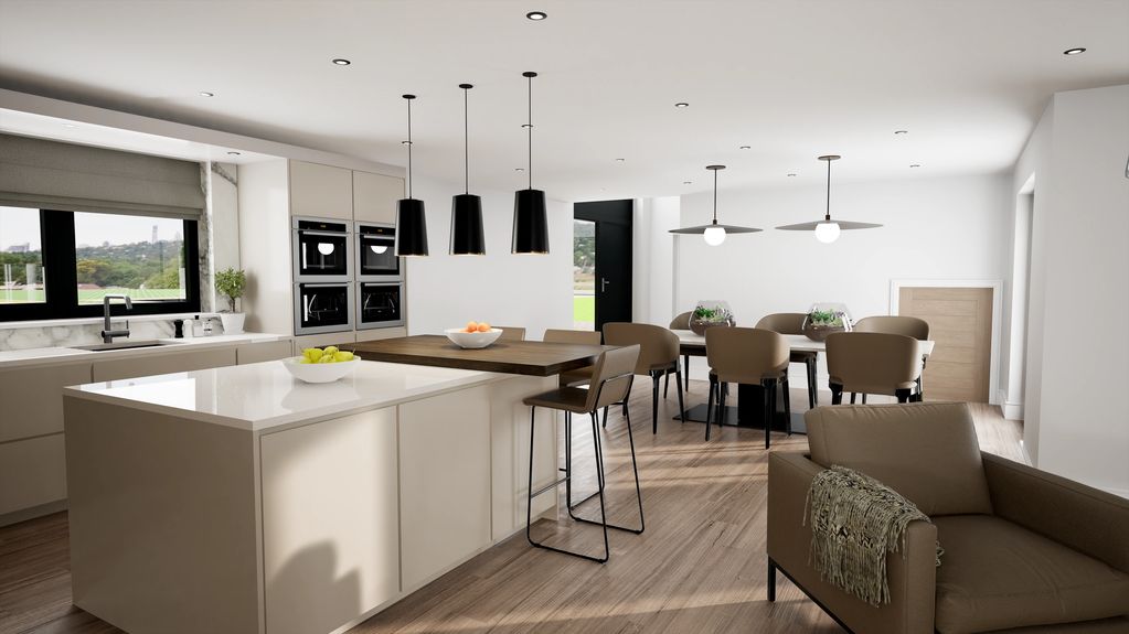 The living spaces at The Woodlands are designed with exceptional versatility, offering the perfect environment for any occasion. Whether you’re savoring a quiet evening for two, enjoying a cozy family movie night, or hosting a lively gathering with friends, these spaces enhance every experience. Spacious and inviting, with panoramic picture windows that beautifully blend the indoors with the natu